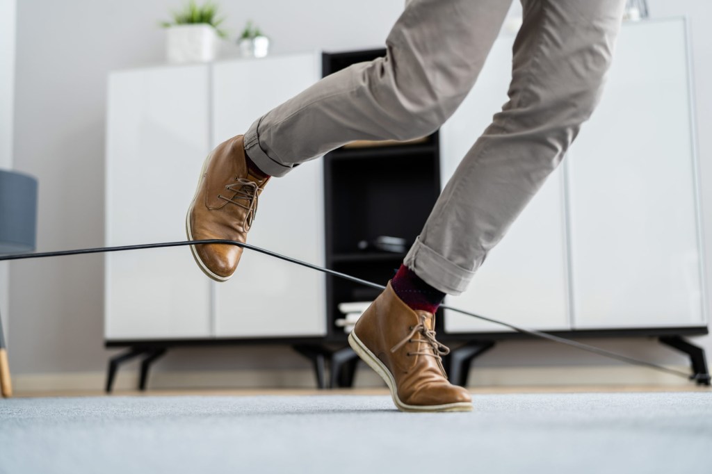 - Tripping over an open desk or file drawer, electrical cords or wires, loose carpeting, or objects in hallways/walkways
