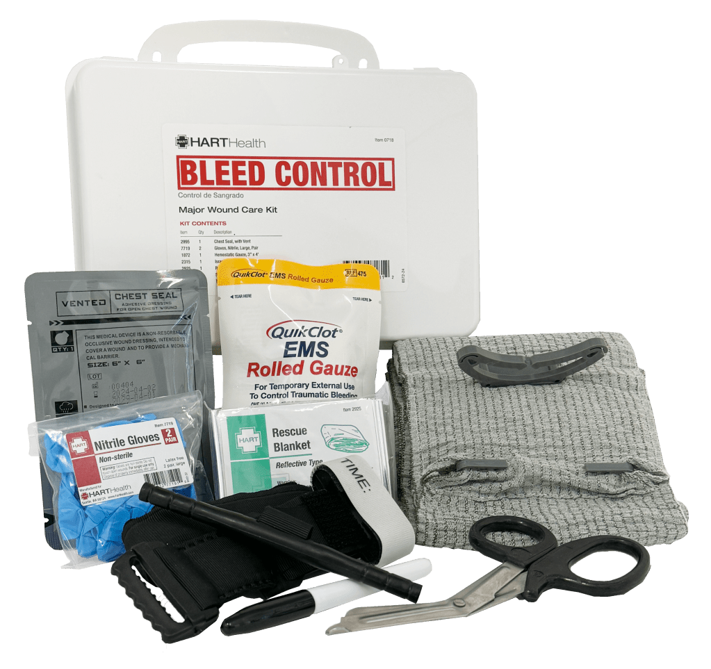 Bleed Control Kits are designed to help stop traumatic hemorrhaging.